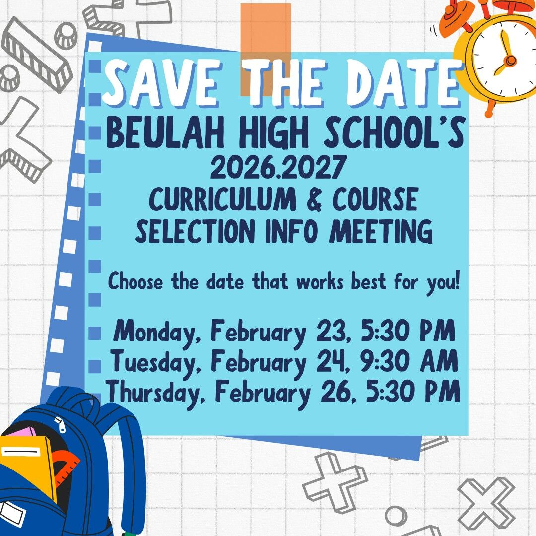 PTO Social Media Safety Night: Monday, November 3 We invite all Beulah parents and students to hear from TWO community leaders about Social Media Safety. District Attorney Jessica Ventiere and local pediatrician Dr. Sara L. Smith T will be present... October 23, 2025